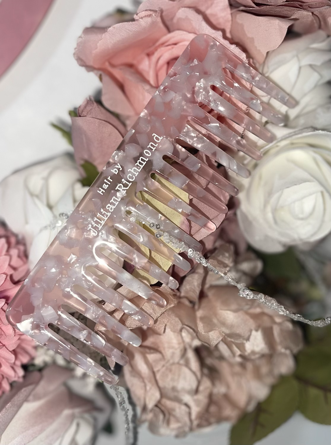 Pink & White Marble Anti Static Curl Comb, Great for combing out your curls and giving you a softer bouncy wave